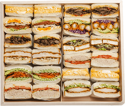 Chicken Club Sando | Tuna Sando | Egg Sando | Beef Teriyaki Sando | Chicken Katsu Sando | Tofu Sando | Vegetable Sando | Shrimp Kunafa Sando