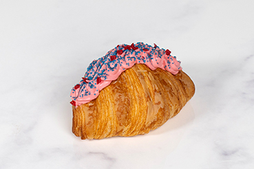 Enjoy the croissant roll inspired by this summer’s Barbie movie. Lovingly filled with homemade diplomat cream, happily topped with pink & blue icing sugar and joyously sprinkled with sprinkles.